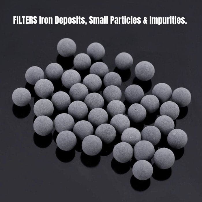 Our premium filter stones clean the iron and sediment deposits found in your water. Our filtration system consists of two types of stones. The negative LON mineral stones which cleans your water from iron deposits, small particles and impurities. The infrared mineral balls filters your water from chlorine that causes dry skin and hair.
