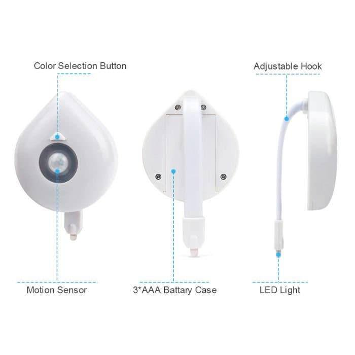Our Night Light Sensor contains a motion and light sensor to preserve the battery life. It turns on automatically only when you enter your bathroom and it's dark. It detects movement within 5 ft and stays on for 2 minutes after the last movement.